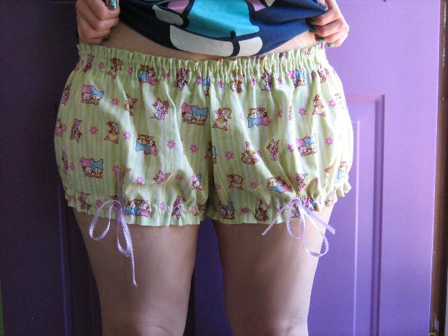 Not quite warm enough to wear these yet, perhaps, but I was pleased at actually having finished a sewing project, so bear with me. These are the Colette Mini Bloomers that made the rounds on Craftster some time ago, and I finally got around to finishing them.