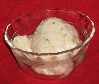 Oh, the recipe? Just a little gem from Hannah Kaminsky’s Vegan Desserts, “Toasted Coconut Key Lime Ice Cream”. I’ve fiddled with key limes exactly once in my life, decided they weren’t worth the trouble, and employed one standard lime instead to get the necessary juice and zest. It yields approximately one pint once all is said and done, which was the perfect amount to slake that cold-n-creamy craving. The texture was nothing short of velvety, and it tested very well with omnivores. Although the coconut milk makes it rich, the tartness of the lime provides the perfect balance.