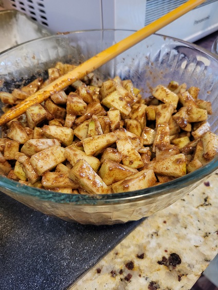 The recipe name is a little bit of a misnomer: the only cinnamon in it is used to coat the apples.