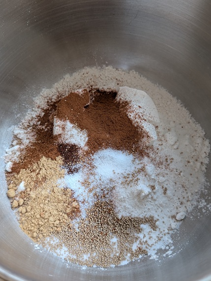 Note the addition of ginger and a little bit of ground cloves to the mix. Also, this might have been my first time not proofing my yeast beforehand, and the whole thing stressed me out.