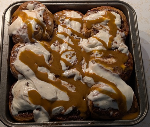 I did, however, have a few days off before New Year’s, and so the great culinary experiment of 2025 came to pass. The behemoth that is Hearst Publications has thoughtfully not provided the recipe on their website for me to link to; suffice it to say it proceeded much like regular cinnamon rolls would, but with a few extra additions.