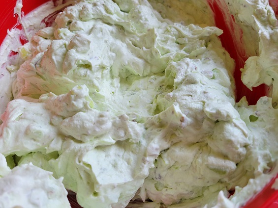 Kraft created this recipe to showcase their new-at-the-time pistachio pudding mix, and originally called it “Pistachio Pineapple Delight” before a newspaper columnist gave it its more infamous name. I call it a misnamed dessert.