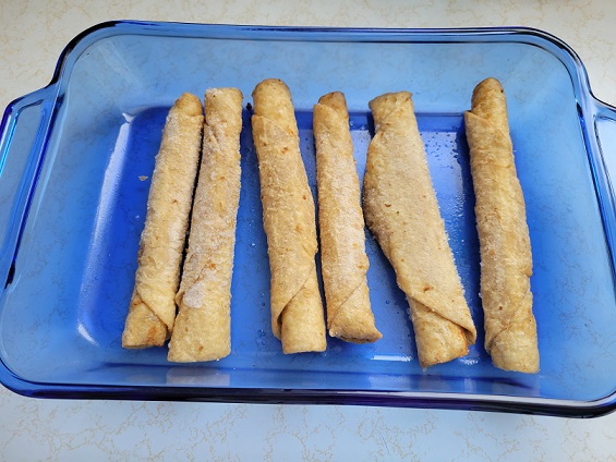 Start with some frozen Taquitos. I used plant-based ones from my favourite independent grocery store, but any kind will work. Once your oven is up to temperature, pop them in there for 10 minutes.