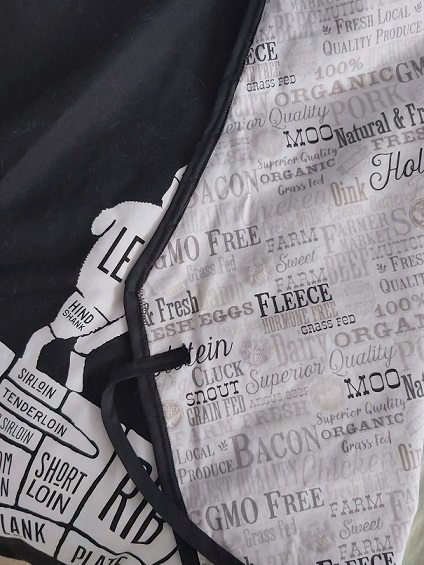 I shouldn’t knock the bias tape – it provided a beautiful finish when I used it all along the edges and held the front of the apron to the lining admirably. Using a straight stitch, no matter how slowly I went, seemed to be an exercise in futility as both sides didn’t seem to catch and I’d have to go over them. Switching to a zig-zag stitch solved this and let me edge the entire thing with a minimum of frustration (but still lots of pinning).