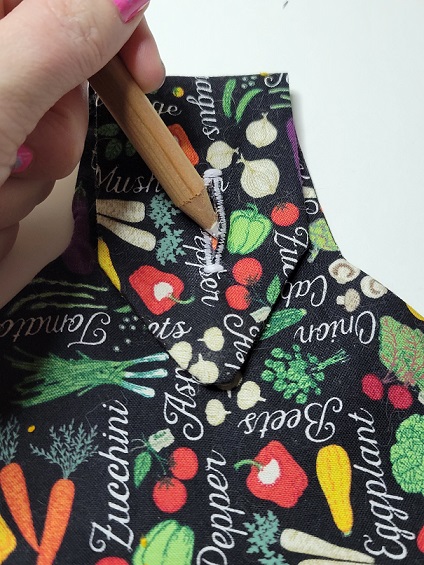 After folding my point down to about where I’d want it, I used that marking pencil through the buttonhole to mark where my button is going to sit.