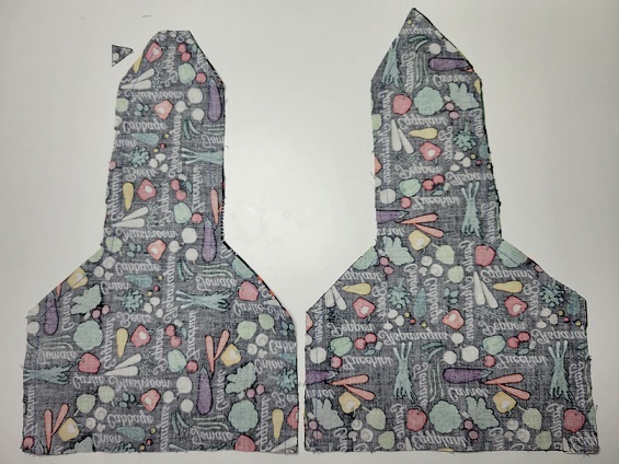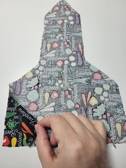 As with most sewing projects, you want to start with your right sides together before sewing your seam. The wide (bottom) part gets left open, but you’ll sew up one side, around the peak, and down the other side.