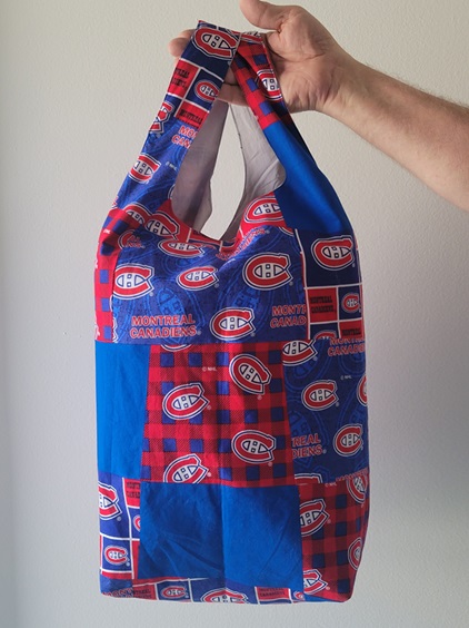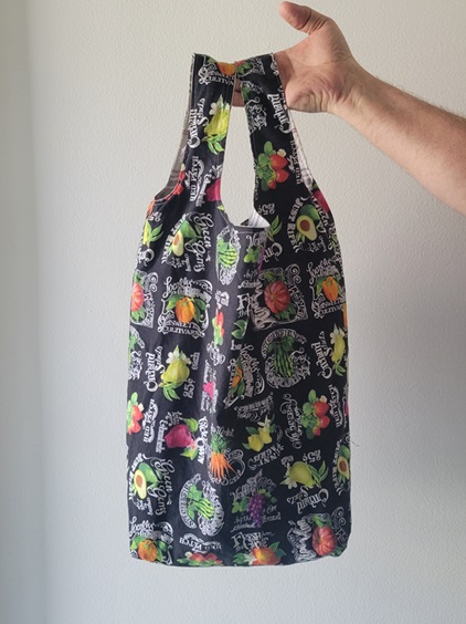 I found the pattern really easy to follow, and quick to sew – especially once I had my first one under my belt. They’re the approximate size and shape of a “traditional” plastic shopping bag, which I find oddly comforting.