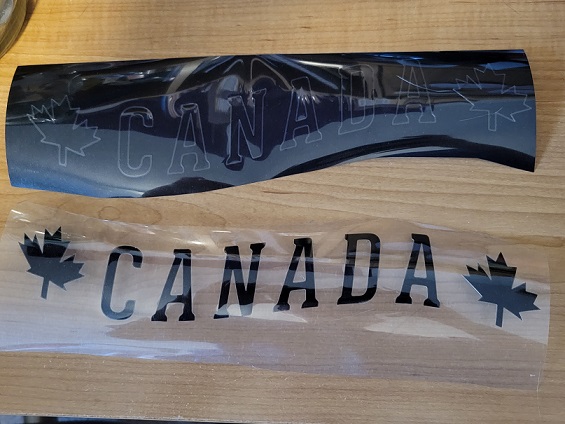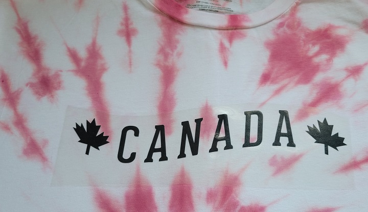 But wait, there’s more! The original tutorial had “Canada” in a pretty unremarkable font, straight across the chest. We found a design we liked on the Silhouette Design Store and edited it so we were left with this: