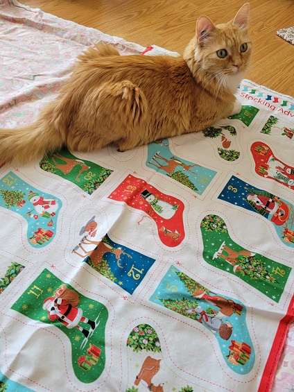 I found a fun paw-shaped stocking pattern (in three different sizes!), and also some fabric on Spoonflower that looks a lot like the cat in question.