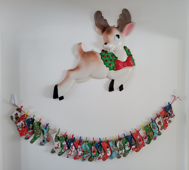 I filled it up with all kinds of toys and goodies, including a gift card to the pet store for future treat purchases…and am starting to think there might have been something to the regular size after all. Right now it’s hanging at kitty’s new abode, where she’s patiently waiting until Christmas morning.