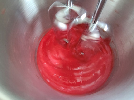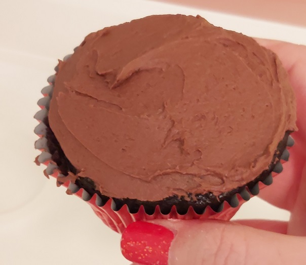 It was time for the filling. The first time I made these way back when, I had tried making a pastry crème from one of my vegan cookbooks, and it was an abysmal failure. Maybe trying it again until I got it right would have helped, but I didn’t have time for that, and found a shortcut on that wonderful trove that is the internet. It seems that… [looks around for eavesdroppers and whispers hastily] vanilla instant pudding, made with half the milk called for on the box, sets up with just the right consistency to fill cakes and/or cupcakes. And a four serving-size box prepared thusly will provide enough pudding for a dozen cupcakes, plus a bit extra for all those cores I saved.