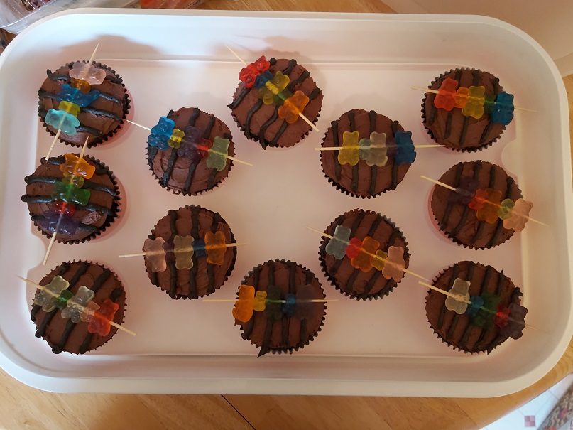 A little while back, I had wanted to make a dozen vanilla cupcakes. If you’ve been with me for any length of time, you’ll probably know that I have yet to find a really lovely, moist, not-too-dense vanilla cupcake recipe. So it was with only a minimum of guilt that I reached for a cake mix – and because one mix makes 24 cupcakes (or 22, according to the box), I carefully divided the dry mix in two and saved half for another time. Fast-forward to me being sick of making sure I don’t stash my baggie of cake mix too far into the recesses of the pantry, and also don’t lose the instructions I cut off the box to save. It was time to do something with this.