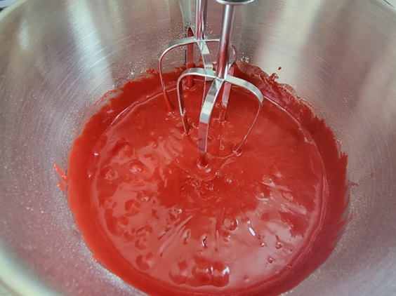 I started by baking my cupcakes more or less according to package directions. A full mix calls for three eggs, and I was fresh out of half-eggs so I used two. (Gasp!) There might be something to that promised yield of 22 cupcakes instead of 24, because as I was filling up my last few liners I was really scraping the bottom of the bowl.
