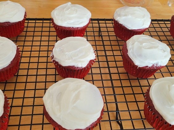 Once they had cooled, I grabbed my trusty cupcake corer and put it to good use. The best part about this is that I got to set the cores aside in a little bowl, to be topped with the leftover filling and topping and consumed as a guilt-free snack later because calories don’t count when they’re bite-sized. (Right?)