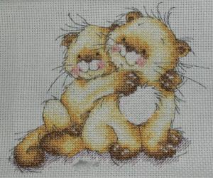 It’s a Solo the Cat pattern by Anchor, found in an old issue of The World of Cross Stitching, and stitched with much cursing of backstitch. This would definitely have been easier on evenweave. It hasn’t been washed or framed yet, but that will come…in time. I had picked Solo because he bears a slight resemblance to one of our cats (very slight – as in, they both have darker markings on a light body, but that’s about it); upon presenting it to them, I realized that I had also done pieces for them in 2004 and 2008 with cuddling cats. I think I detect a trend.