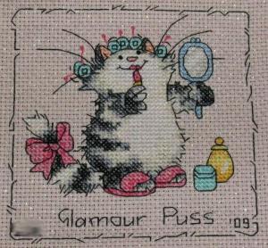 Okay, so when I found out in the summer that my coworker was going to have a baby, I was excited. Not because I like kids (I don’t), but I do like her, and this was an excuse to stitch something different! I chose a design by Cinnamon Cat called “Pitter Patter”, which I liked for its colours – she wasn’t going to be finding out the sex beforehand, and this one wasn’t full of your typical pastels. (It was a boy, by the way, born Boxing Day.) I finished the bulk of it in December, and just before we left work on New Year’s Eve, the e-mail came around with a name and date. It might be a sad comment on my social life that my New Year’s Eve was spent at home stitching, but to this I say, “Bah.” It was too cold to go out, anyway. I put in the final stitch just shortly before 10:00, effectively making it my final project of the year. I spent the next two days applying coats of purple spray paint to a black six-inch frame, and voila: