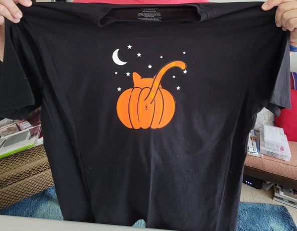 I trimmed him to size, backed him with some black glittery felt, and added a shiny hanging loop.