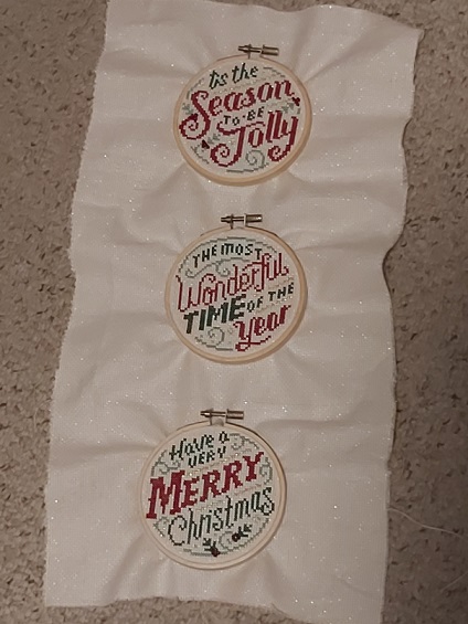 This is indeed serendipitous timing: I downloaded the patterns for these hoops exactly one year ago (based on the “printed” date at the bottom of the pages). Someone on Lettuce Craft had stitched one of the designs, and I absolutely loved the typography. I immediately went off to download a digital copy of the magazine they were from (the November 2020 issue of Cross Stitcher, if anyone’s interested) even though I knew there was no way they were happening last year, not with 10 days to go before Christmas.