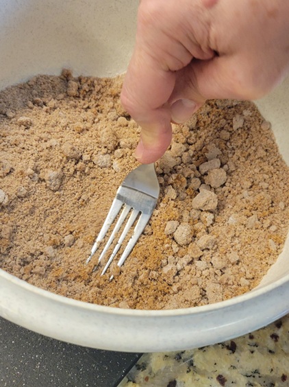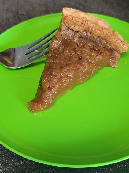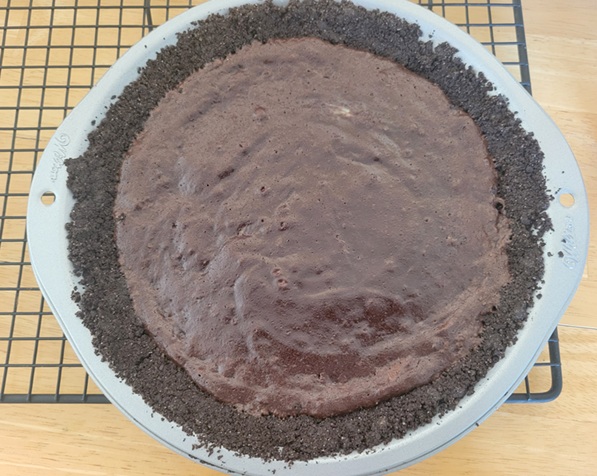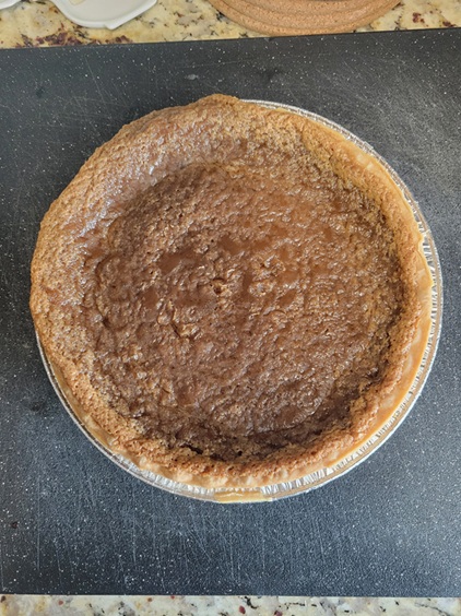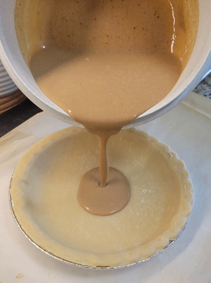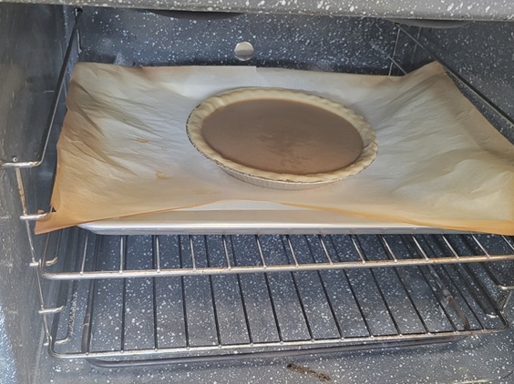 I know from this picture it looks level to the top of the pan, but I promise there’s a recess for filling. This pie pan has the weirdest-angled sides.