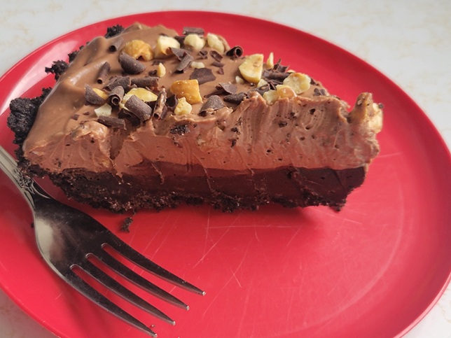 I would like to go on record as stating that I cut that first piece entirely too large. This dessert is rich, and a small slice is more than enough to savour the magic of chocolate and hazelnuts.