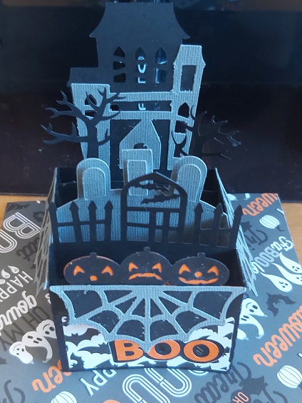 The haunted house card (and the banner!) came from SVG Cuts. This was the second time I’ve put one of their box cards together, and it was deceptively simple to make.